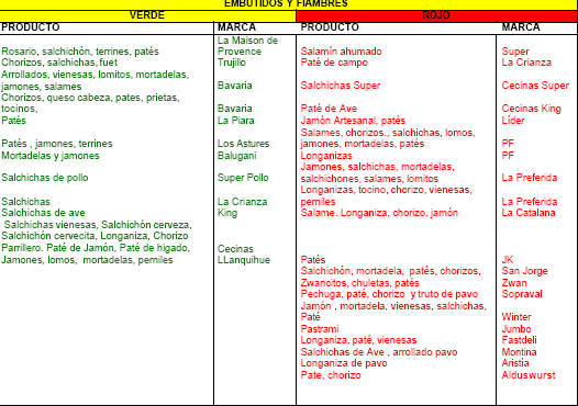 Lista Roja en Chile: Incluye productos para los que sus fabricantes no garantizan ausencia de soja o maíz transgénicos, o derivados de estos, en sus ingredientes o aditivos, e incluye, también, a aquellas empresas que no respondieron nuestro cuestionario.